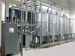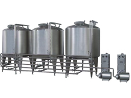 This CIP system is composed by acid tank, alkali tank, hot water tank, concentrated acid and concentrated alkali tank, progress pump, electrical control box, concentrated acid and concentrated alkali diaphragm pump, valves, piping and fittings etc. Each storage tank is made of high quality stainless steel, acid and alkali contact part use SUS316L stainless steel, centrifugal product feeding pump, reflux pump, product feeding pump inlet connect with three storage tank liquid mouth, and controlled by butterfly valve, the outlet connect with duplex filters and each pipes, the cleaning liquid to be heated and transferred to each cleaning point (use stirrer blending cleaning liquid uniformly). Reflux pump inlet connect with reflux pipe, the outlet connect with four storage tank upper reflux liquid mouth (inlet) , and to be controlled by butterfly valve, each storage tank bottom part with drainage outlet and overflow mouth, and with thermometer and liquid level gauge, top with manway lid, with concentrated acid and concentrated alkali adding mouth, top with empty pipe to exhaust gas.