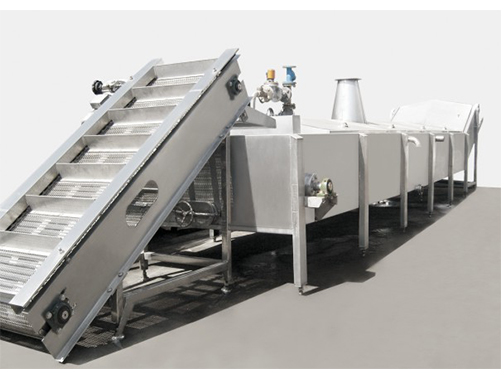 - 箱体式结构、网带刮板式输送,可使物料根据进入先后自动有序无残留输出,能保证物料预煮时间的基本恒定;