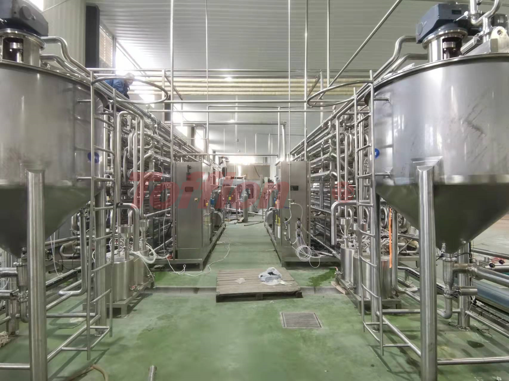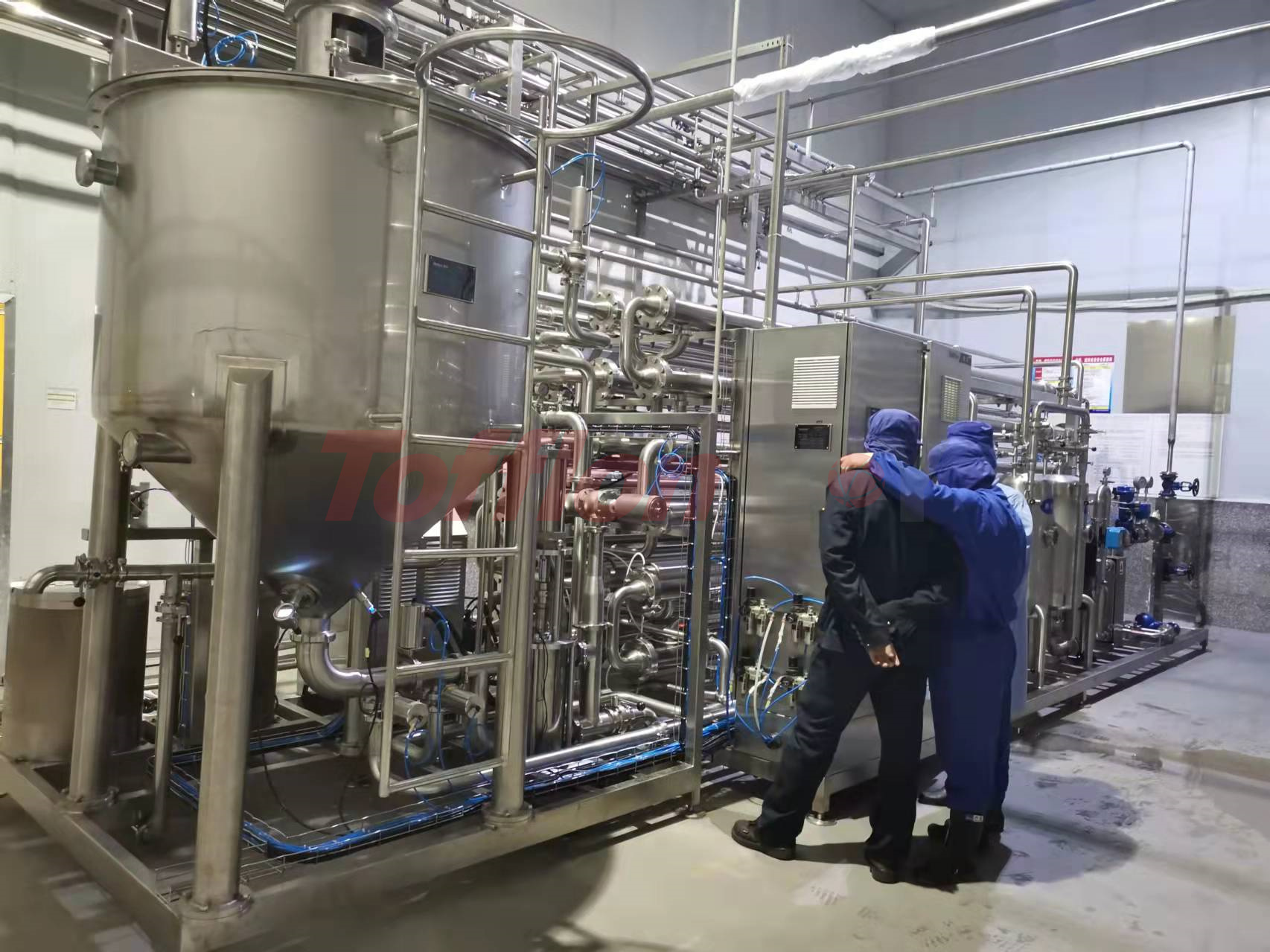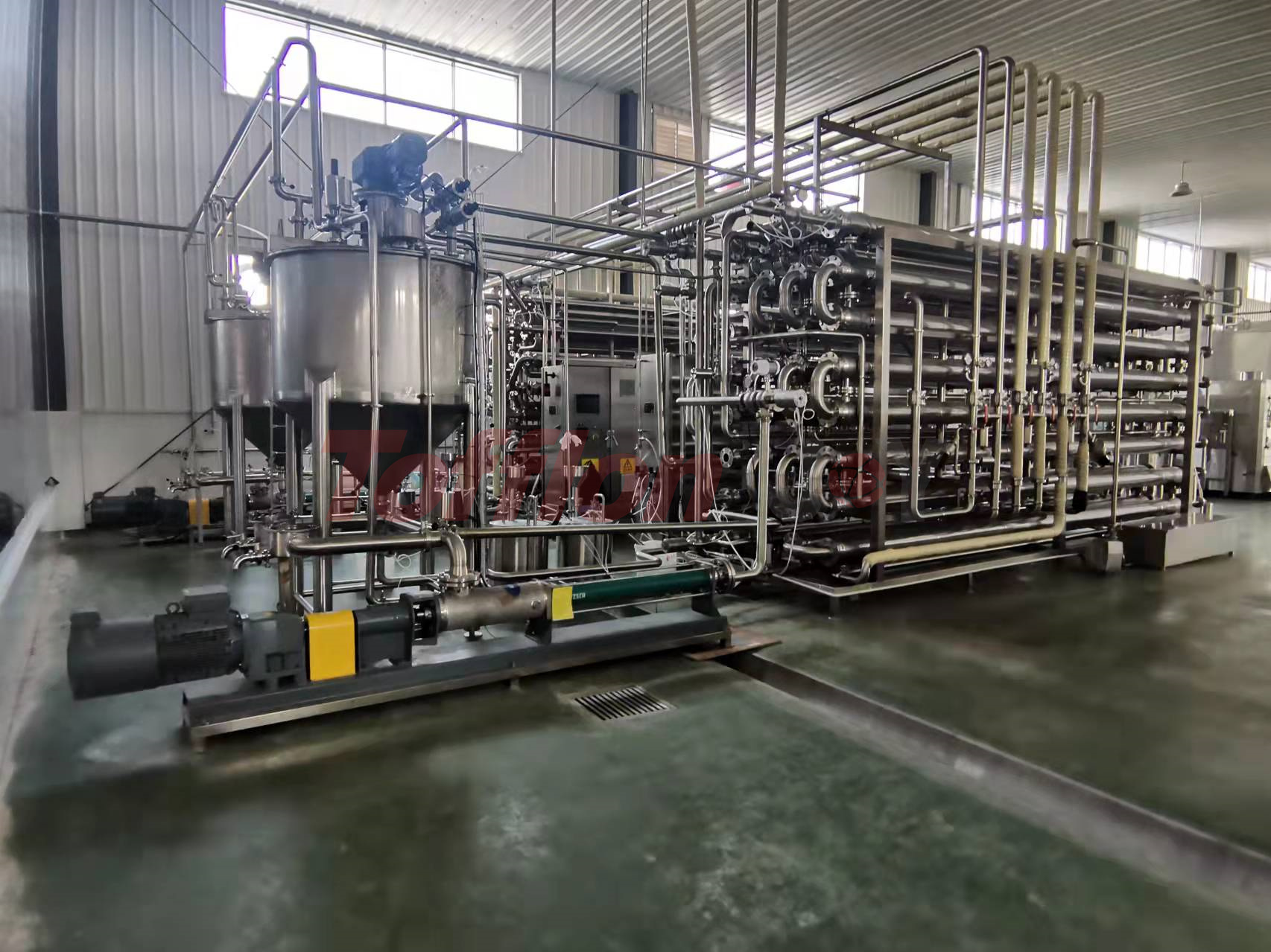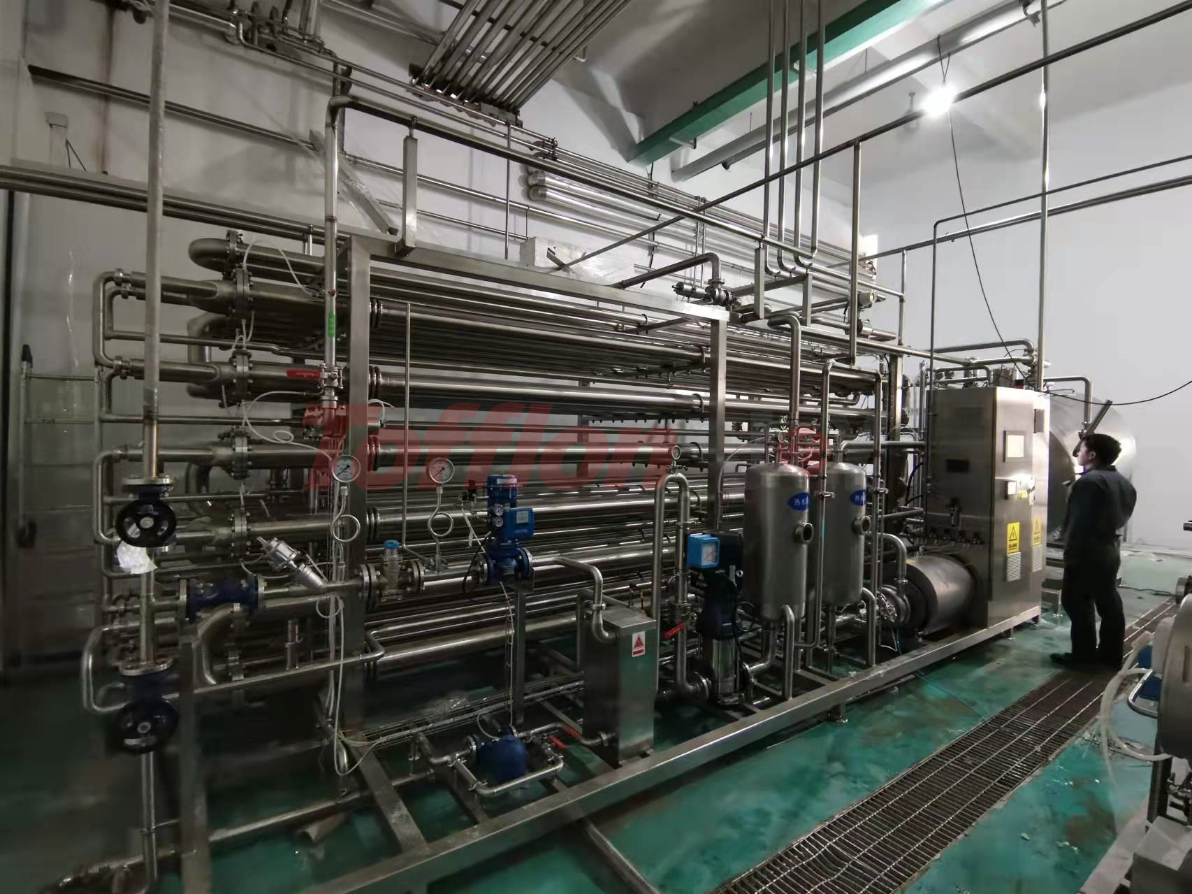 为了尽可能让产品保持在适当的粘度范围内,并保护产品颗粒的完整性,上海东富龙承欢结合国内外先进技术,通过自主研发、设计制作出专门针对高粘度、高浓度、含大果粒等液态食品进行连续性灭菌的工艺创新-多功能套管式杀菌机。